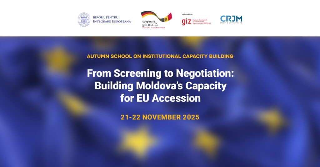 Școala de toamnă este organizată de Centrul de Resurse Juridice din Moldova în cadrul proiectului „Policy Advisory Fund”, finanțat de Ministerul Federal al Germaniei pentru Cooperare Economică și Dezvoltare (BMZ) și implementat de GIZ Moldova.