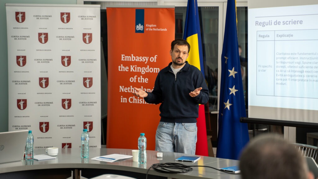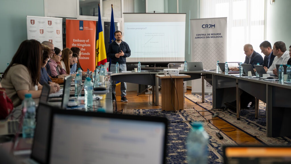 Instruirea în domeniul AI a fost organizată în cadrul proiectului „Protejarea democrației în perioada post-electorală: Răspuns strategic și multisectorial împotriva amenințărilor hibride ce atentează la instituțiile democratice ale Republicii Moldova”, implementat de Centrul de Resurse Juridice din Moldova cu sprijinul financiar al Ambasadei Regatului Țărilor de Jos.